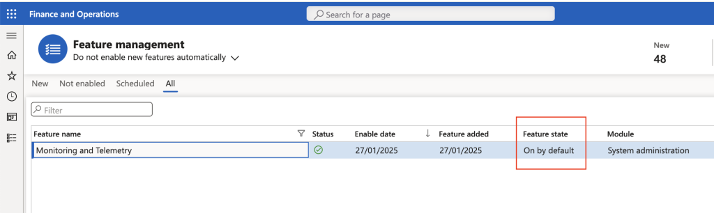 - En Dynamics 365 Finance & Operations, abre el espacio de trabajo Administración de características (Feature Management).